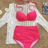 Bộ bơi nữ usronnie gồm: 1 áo lưới hồng sen, 1 áo lót có đệm ngực, 1 quần ngắn.