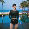Bộ bơi nữ usronnie gồm: 1 áo lưới dài tay, 1 áo lót có đệm ngực, 1 quần ngắn.